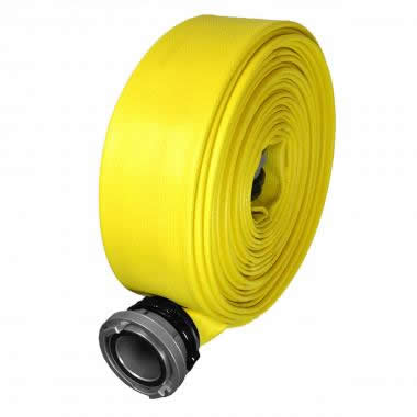 Lining: The lining is a single-ply extruded tube of synthetic polyurethane, engineered to resist ozone. The polyurethane tube adheres to the jacket, preventing delamination. The finished product meets and exceeds potable water specification, Mil-H-24606B, standards for manufacturing lightweight fire hose. Polyurethane lined fire hose is designed to increase packing ability for applications where lightweight fire hose is desired.