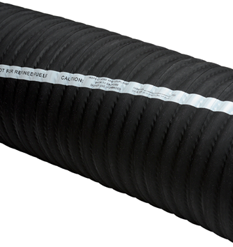 A versatile suction and discharge hose designed to handle brine, crude oil, drilling mud, mild chemicals, petroleum waste, sediments, sludge, slurries and water in oil field applications such as frac tank service. The corrugated hose construction incorporates a wire helix that provides full suction capability, flexibility, kink resistance, and a path to conduct a static electrical charge to ground. The nitrile/SBR cover is resistant to abrasion, oil and weathering.